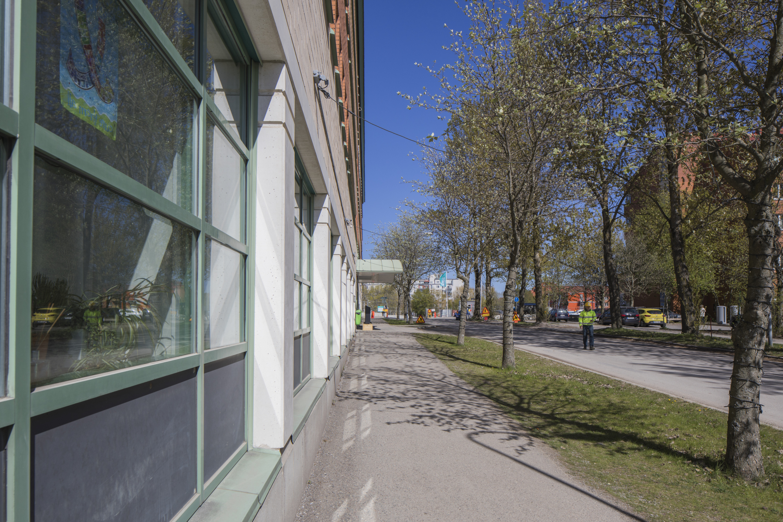 Fastigheten ligger i ett expansivt område med mycket liv och rörelse. Ett stenkast från skolan finns tågstation, stor bussterminal, butiker och restauranger. Stockholmsmässan ligger några minuters promenadväg bort.