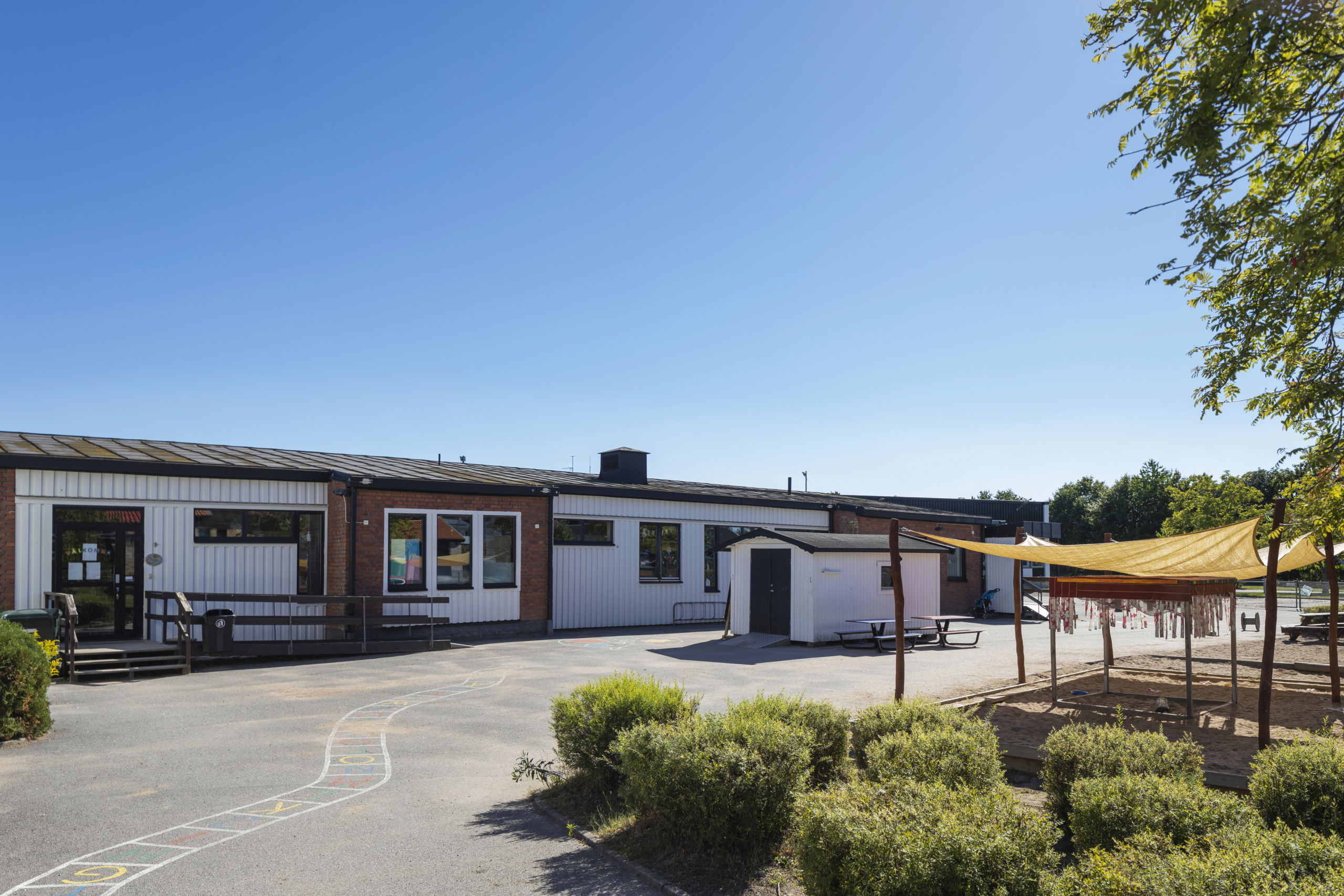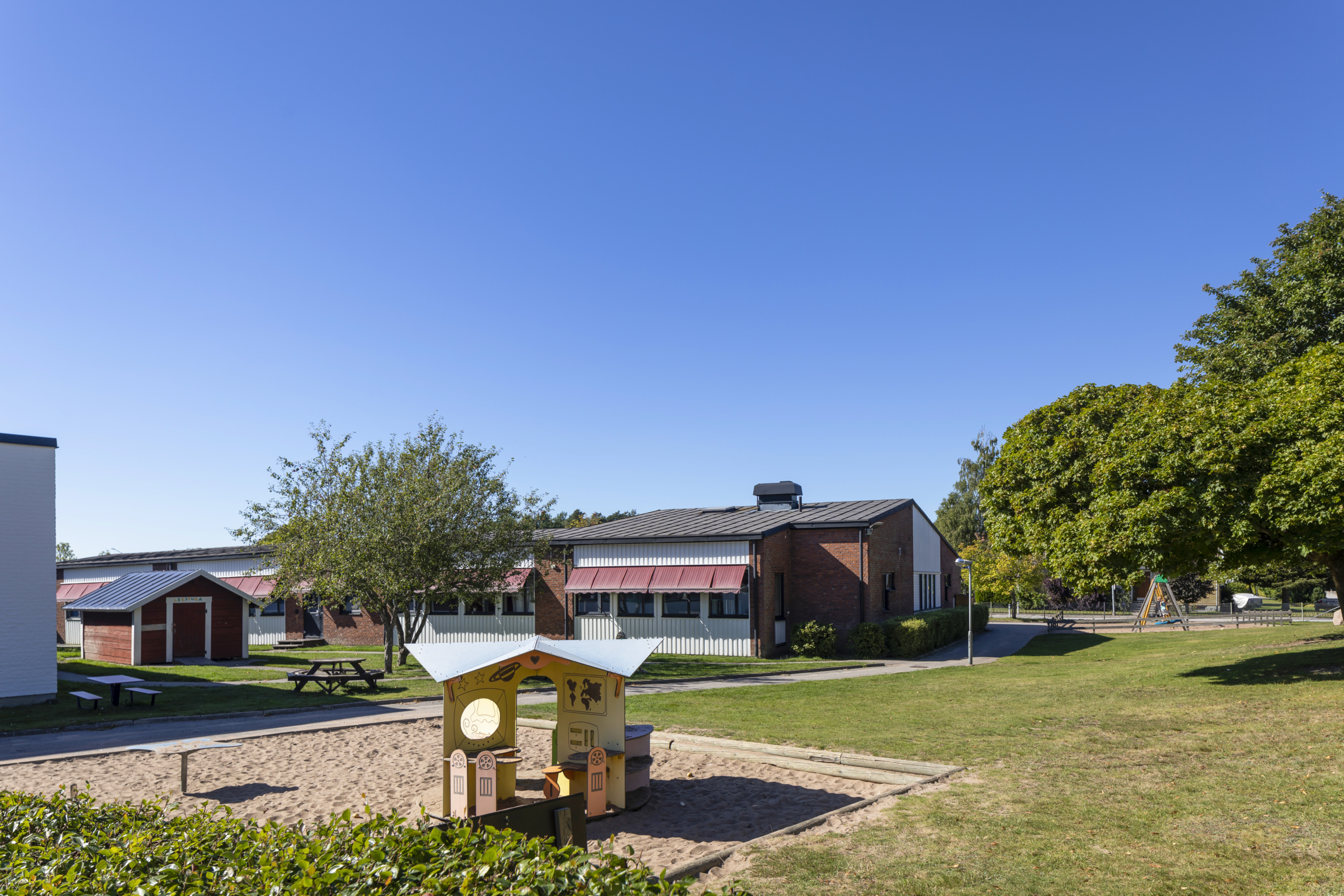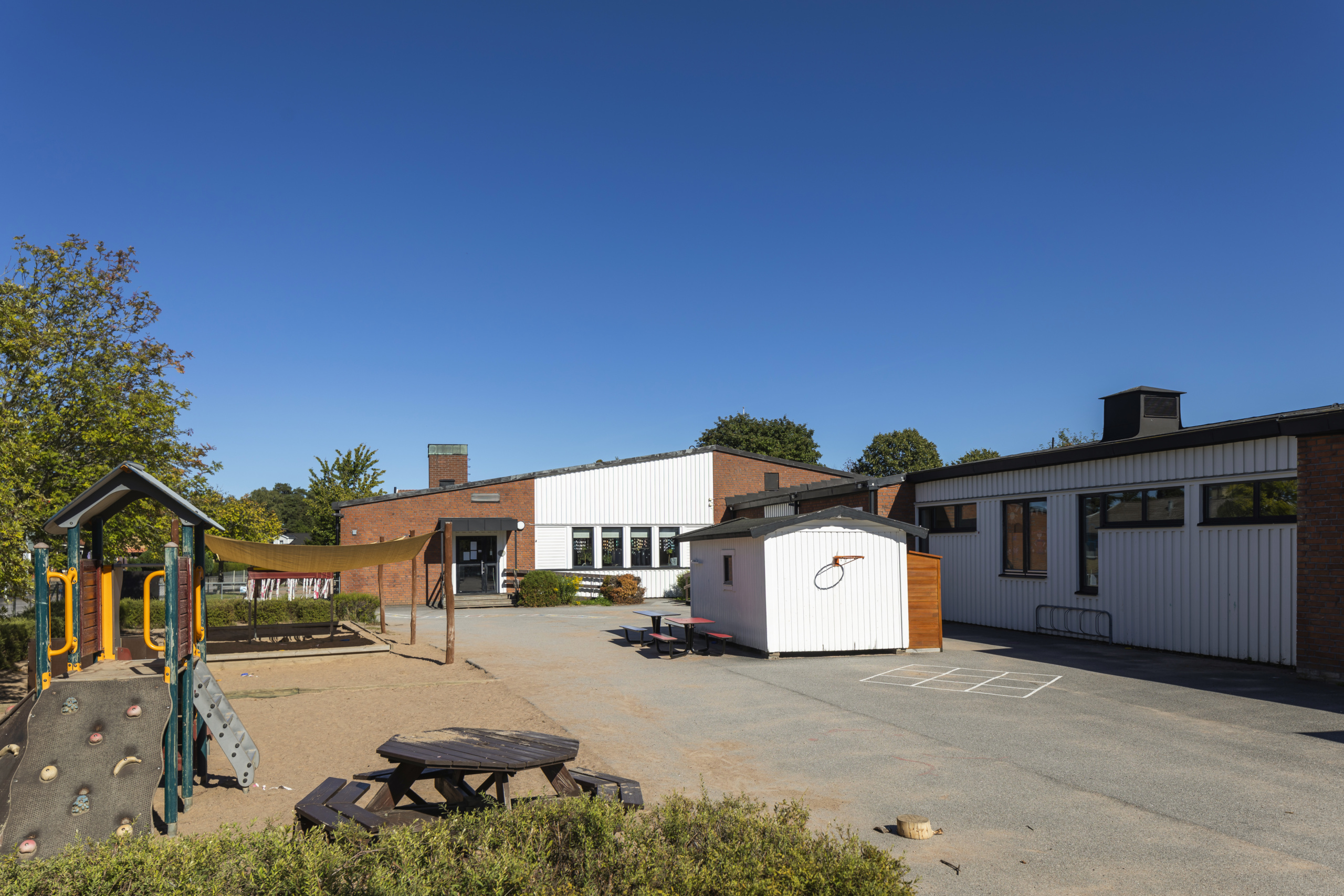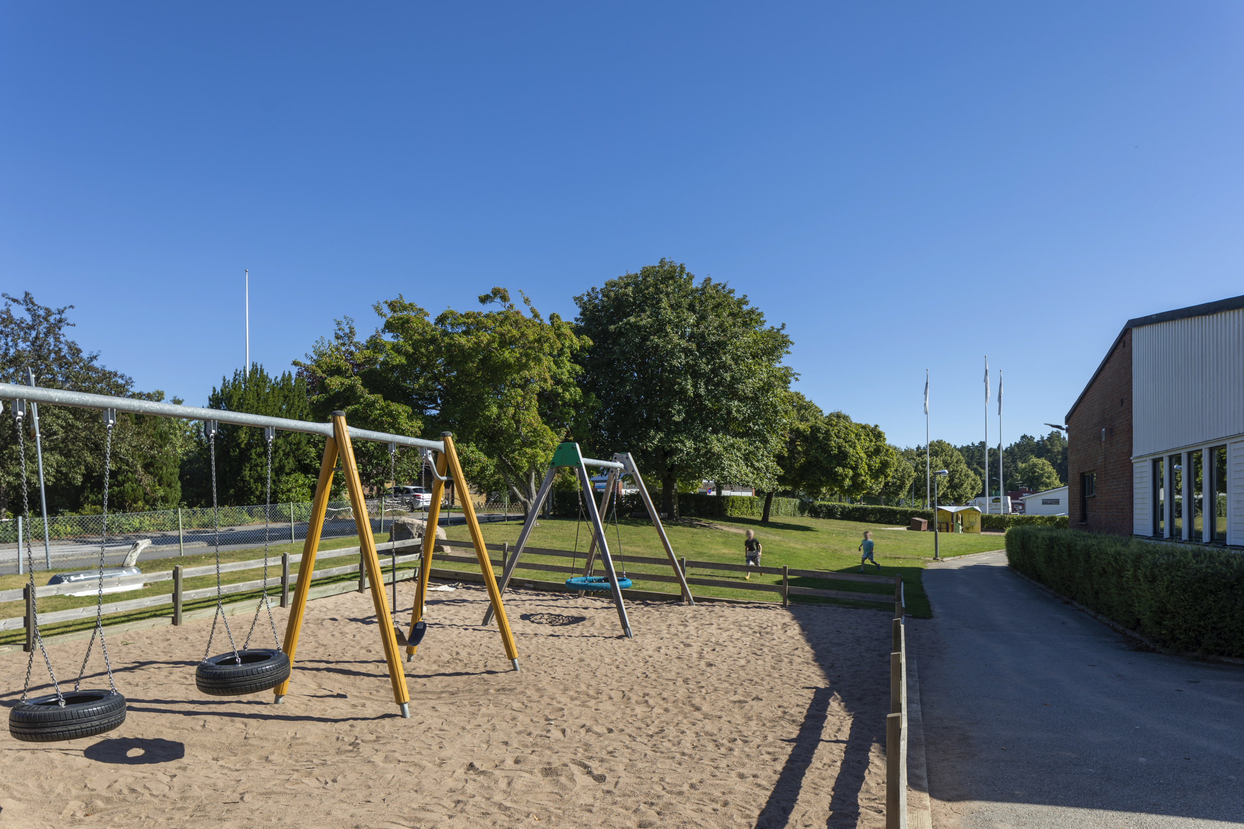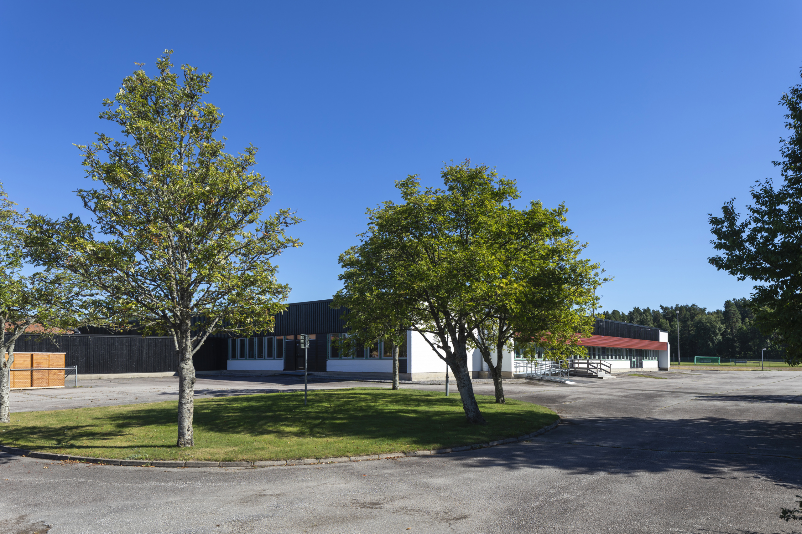 Till fastigheten hör en stor idrottshall med handbollsplan, volleybollplan med mera. Det är nära till såväl idrottsplats som kommunens badhus och bara några hundra meter bort finns ett vackert skogsområde.
