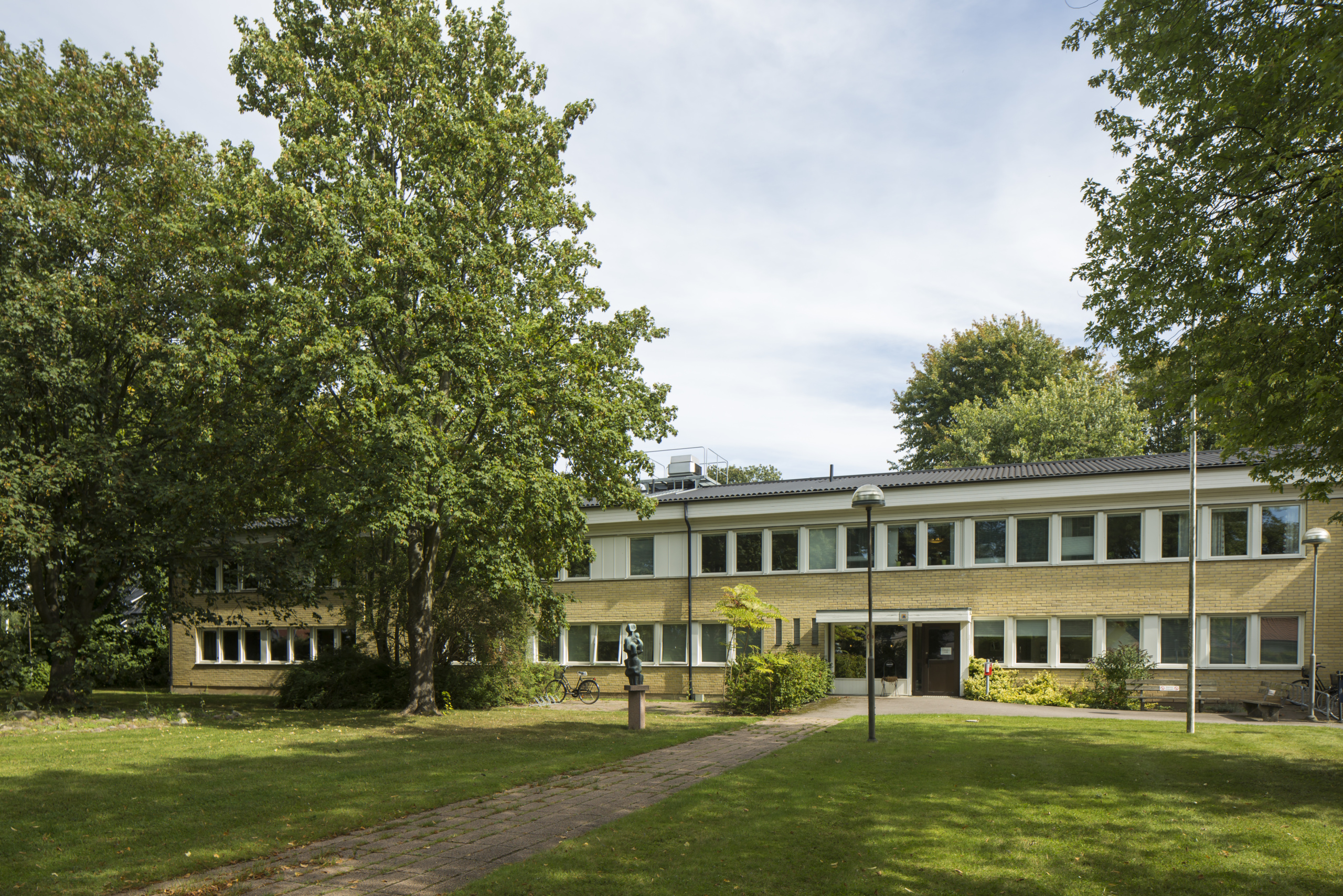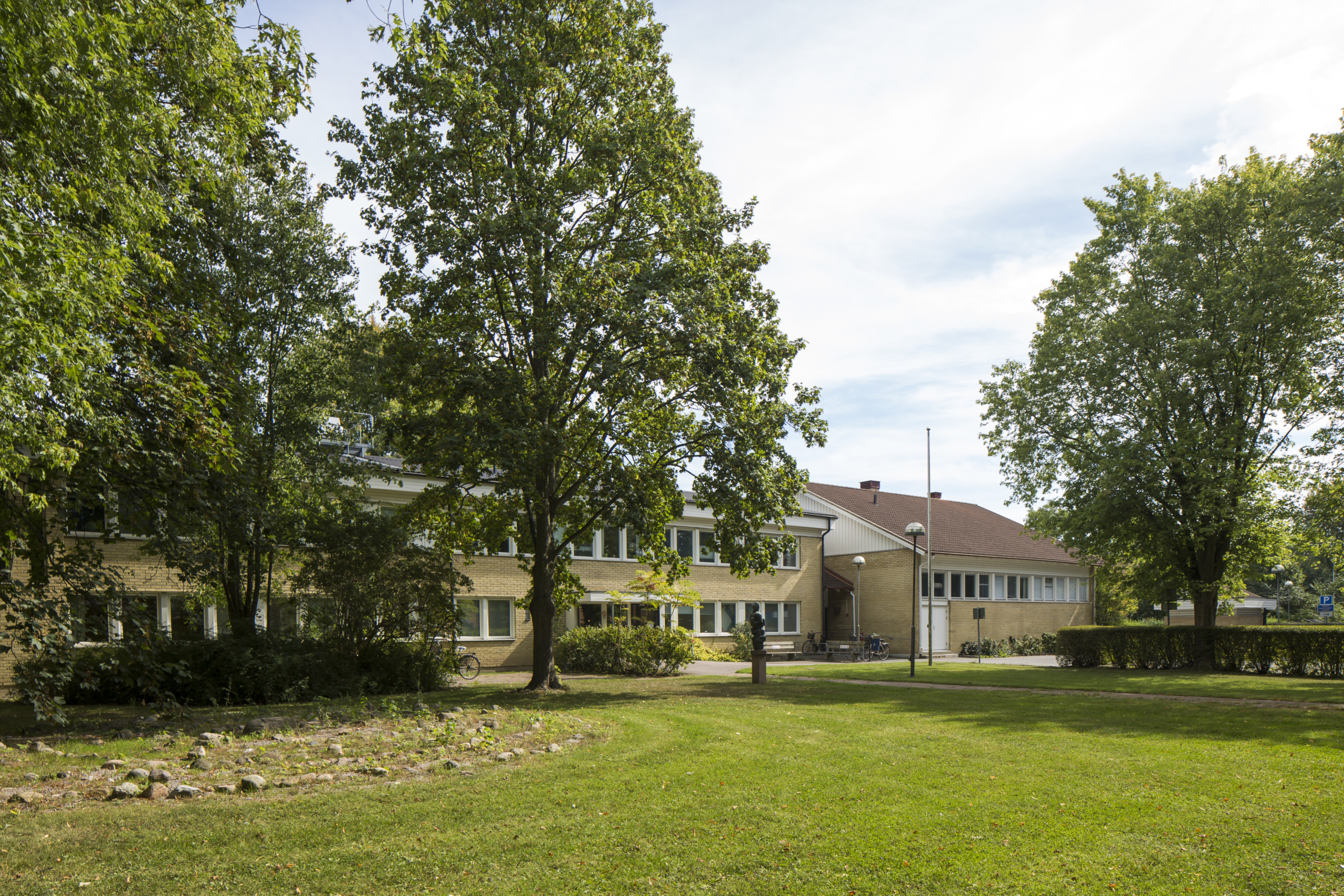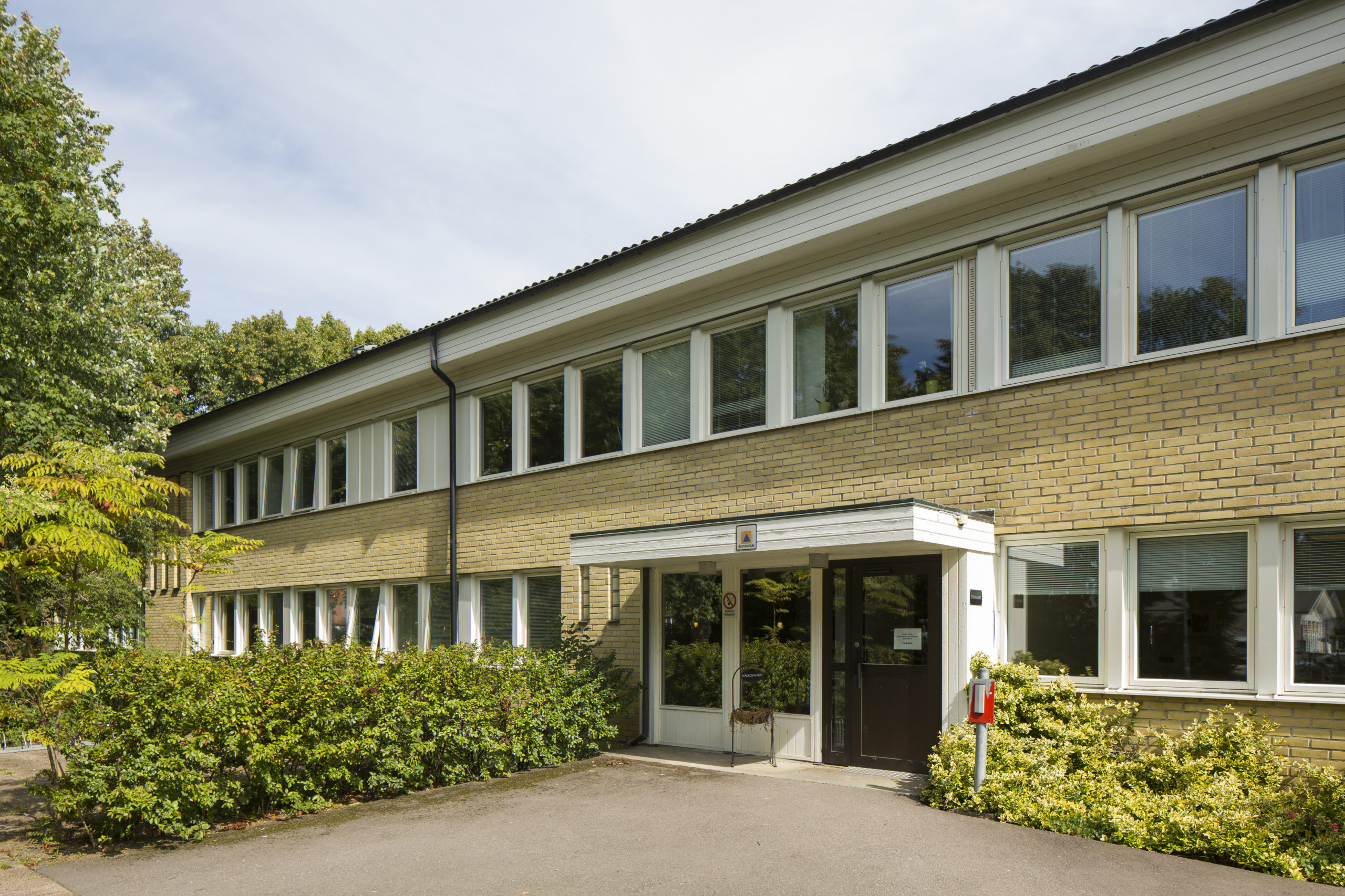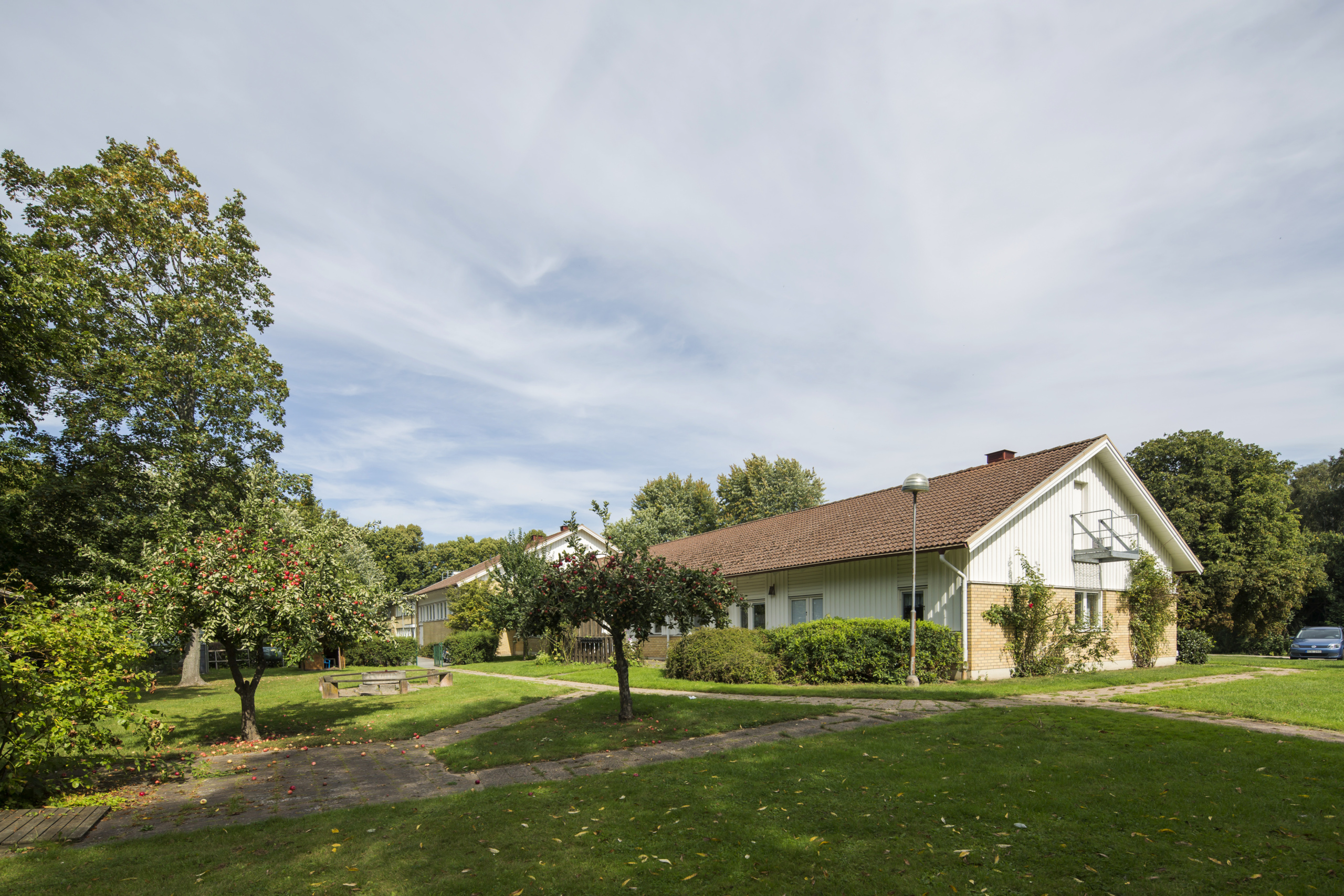 Fastigheten ligger inbäddad i grönska i anslutning till sjukhusområdet och ett bostadsområde.
