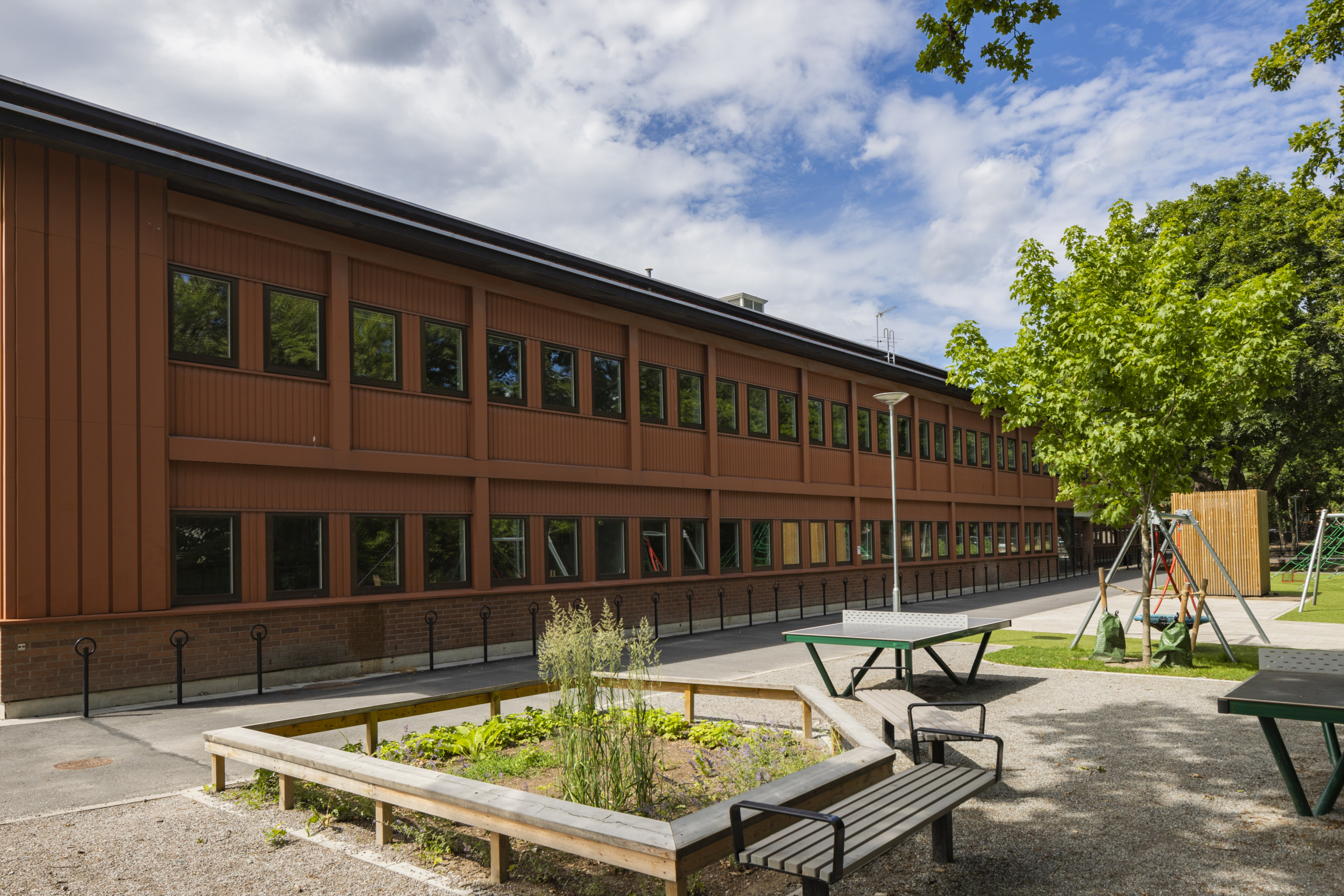 Idag har fastigheten en yta på sammanlagt 6 450 kvm och skolan har plats för 750 elever från förskoleklass till årskurs nio. Under 2020-2021 genomfördes en om- och tillbyggnad för att skapa mer utrymme och möjlighet till skolverksamhet. Projektet omfattade en ombyggnation av befintlig byggnad samt en nybyggnation av idrottshall, kök och matsal. Arkitektfirma för projektet var Tengbom.