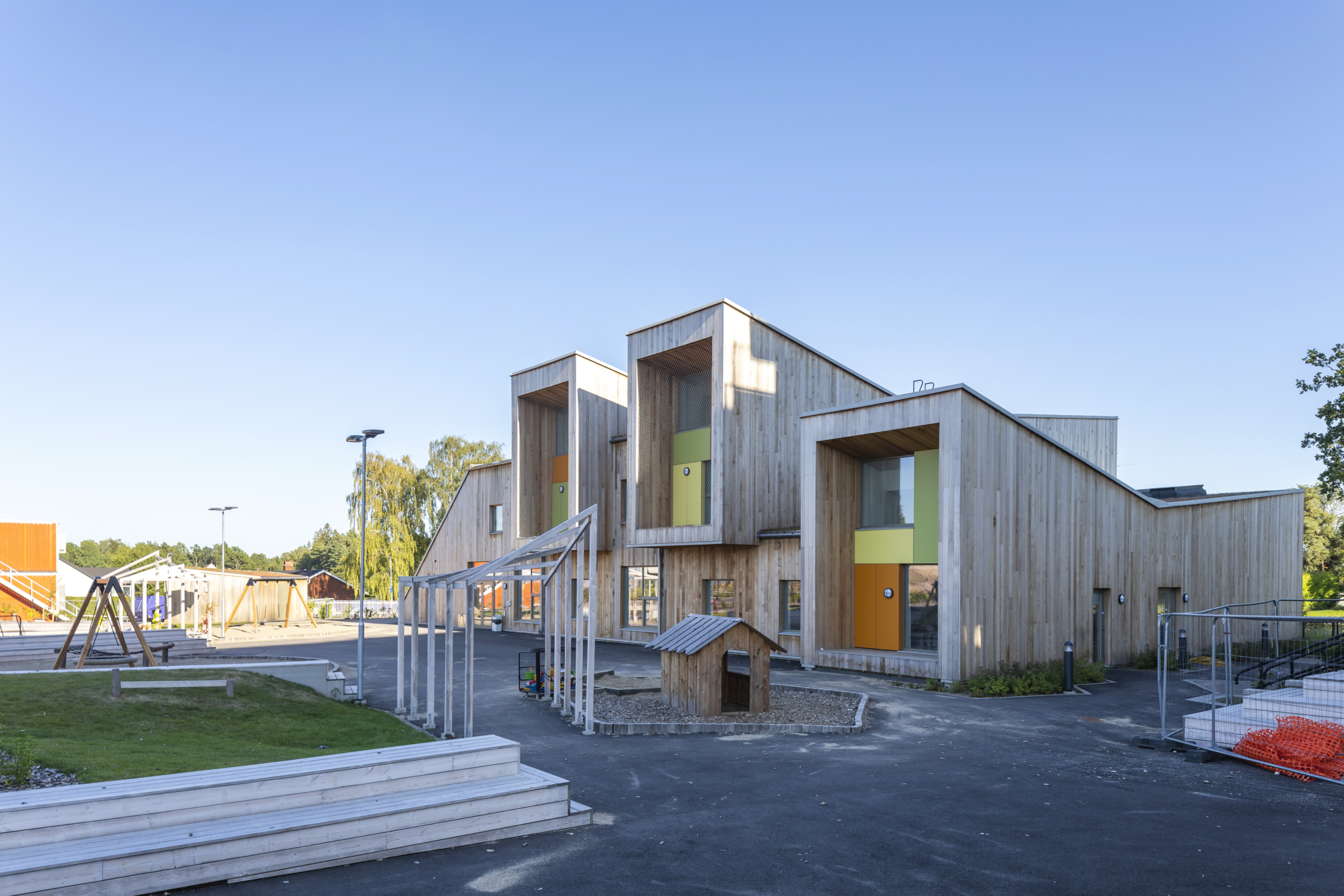 Fastigheten är anpassad för förskoleverksamhet och har en omgivande skolgård med gräsmatta och plats för lek. Närmaste granne är ett äldreboende, i övrigt består omgivande bebyggelse i huvudsak av lägenheter och villor.
