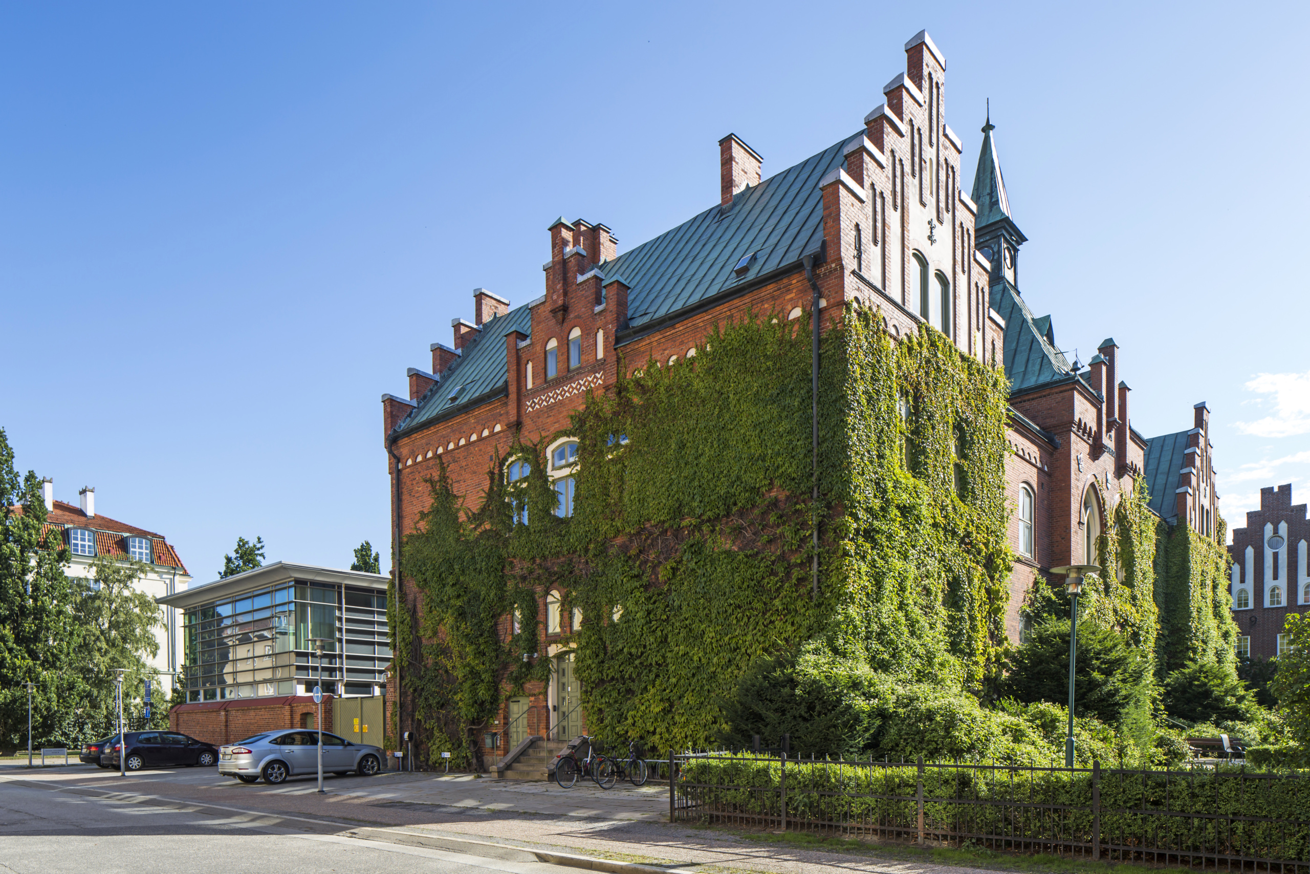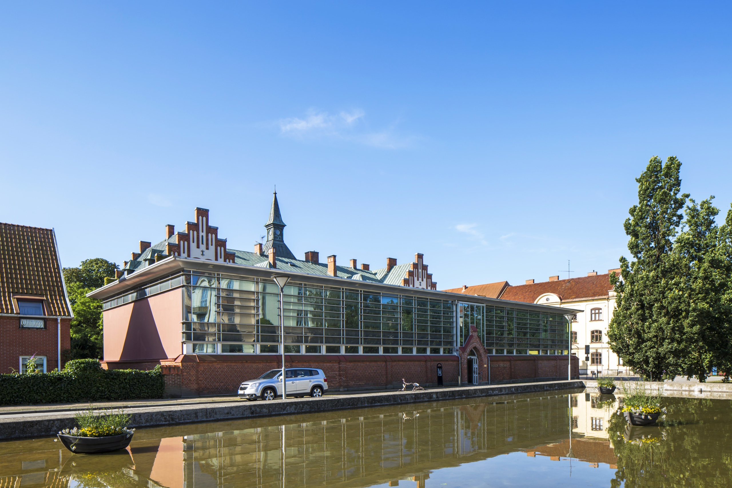 Vacker fastighet från början av 1900-talet med torn och klängväxter på fasaden. Tillbyggnad i modern arkitektur som bryter av mot det gamla. Fastigheten har ett attraktivt läge i centrala Ystad med närhet till all önskvärd service.