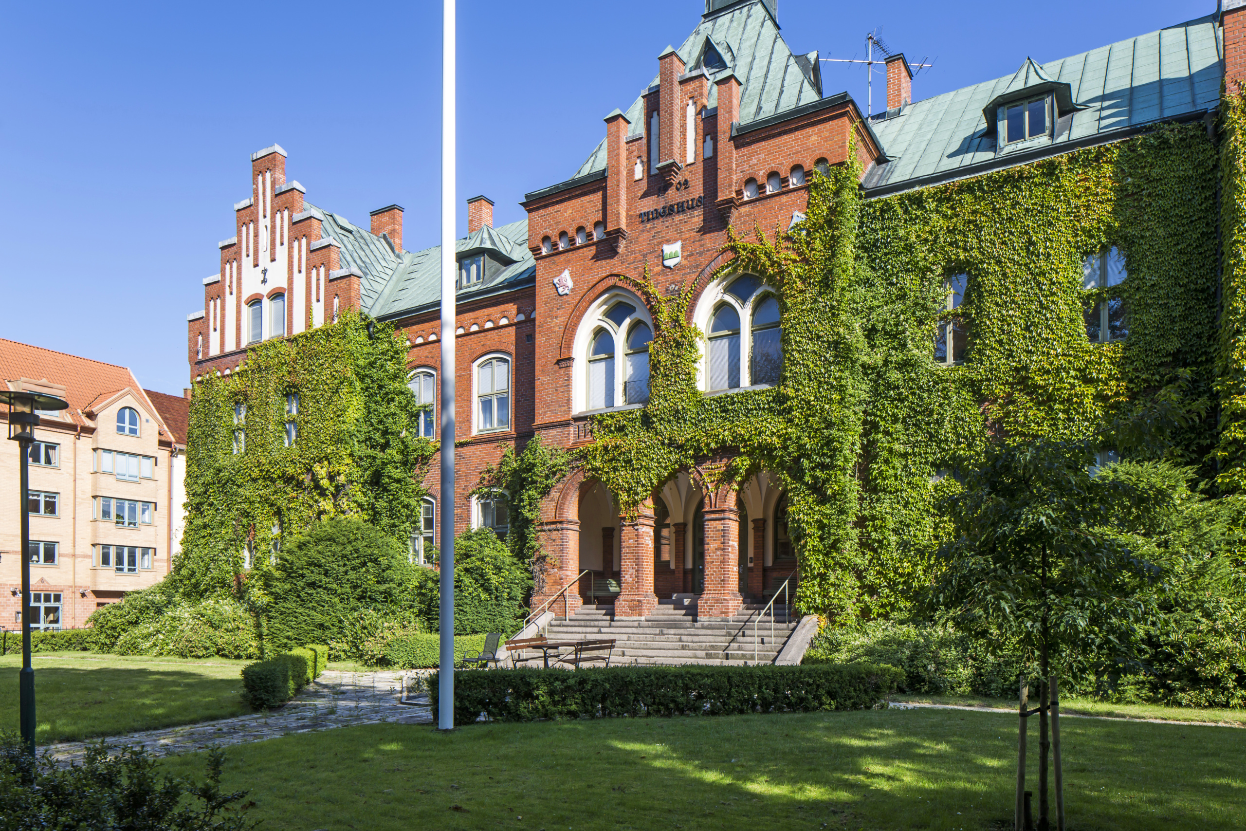 Fastigheten byggdes ursprungligen 1902, men byggdes ut 2006 och fick då ytterligare två tingssalar. Utbyggnaden har glasad fasad och en passage till den äldre delen av fastigheten. Den totala ytan är idag 2 980 kvm. I fastigheten bedrivs verksamhet inom rättsväsendet.