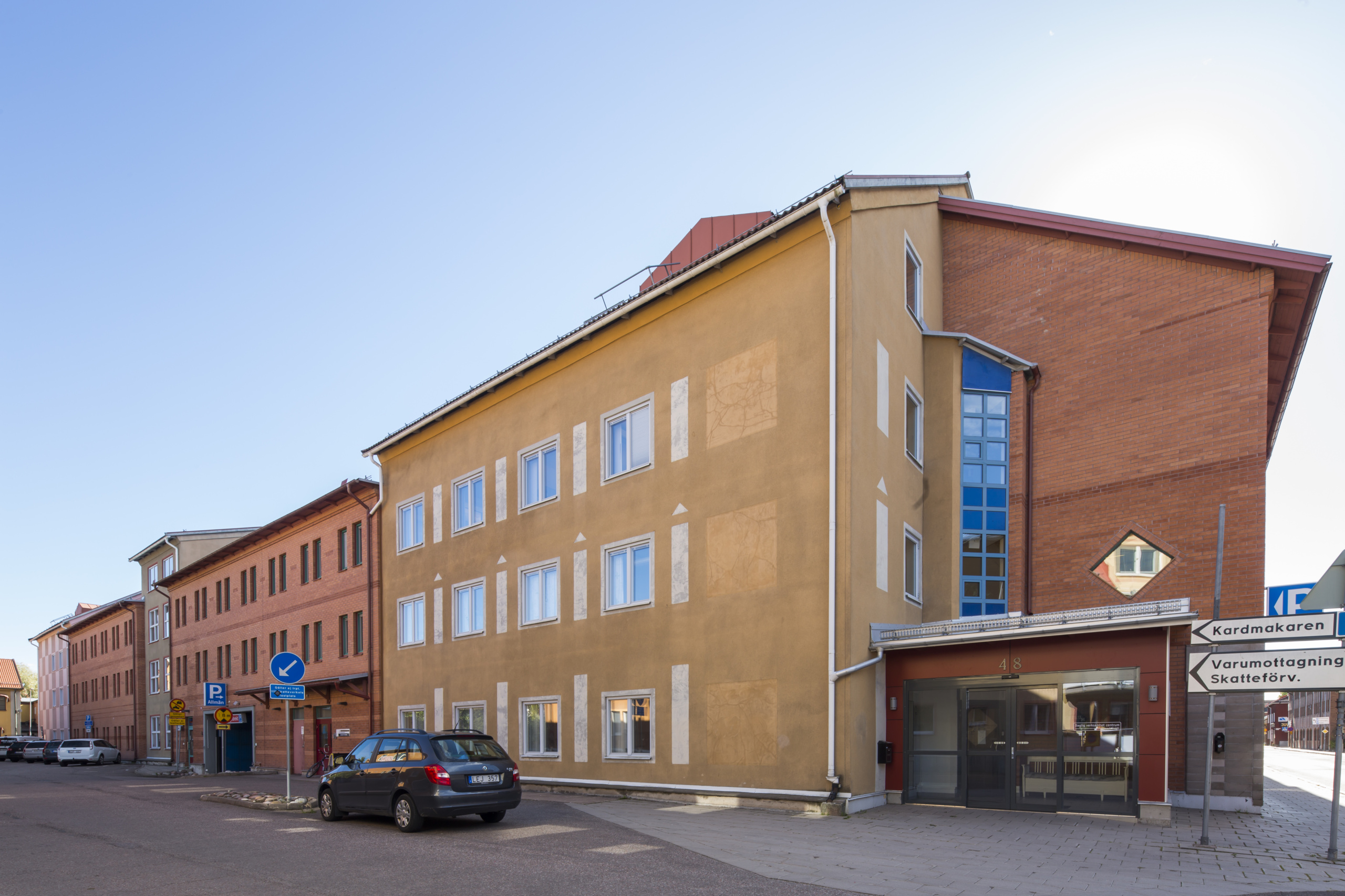 Kardmakaren 20 är en vacker fastighet centralt belägen nära Faluån, granne med polishuset och med trevliga promenadstråk runt knuten. Fastigheten utmärker sig genom sin fasadkonst.
